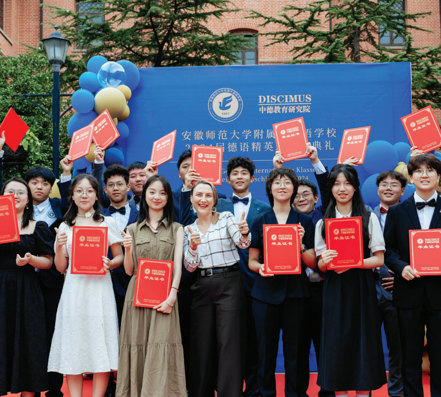 安徽师范大学附属外国语学校DISCIMUS中德班,德语由中外教共同授课,文化课由学校各学科老师授课。学生在上海世外临港外国语学校完成一年的中德班后,可直接前往德国高级文理中学继续完成学业,达到标准,获得Abitur毕业证书后,可以等同德国本地学生享受升学福利待遇,申请德国著名大学专业选择无限制,以及德国、瑞士、奥地利等国家大学本科(3年)、硕士(2年)及博士阶段全免费的教育福利。毕业于德国高中的学生也能以德国高中毕业生身份申请英美国家的顶尖大学,拥有更多的求学选择。